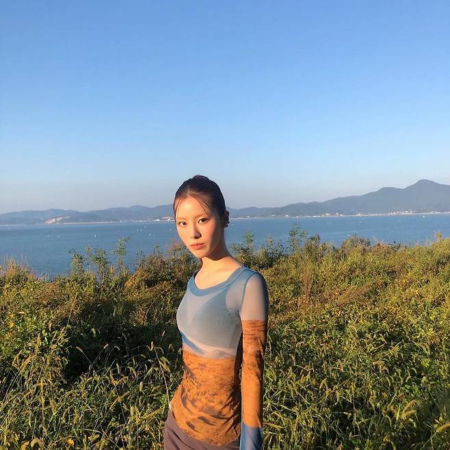 공개된 사진 속에는 청량한 푸른색 나시를 입고 카메라를 응시하는 김예림의 모습이 담겼습니다.