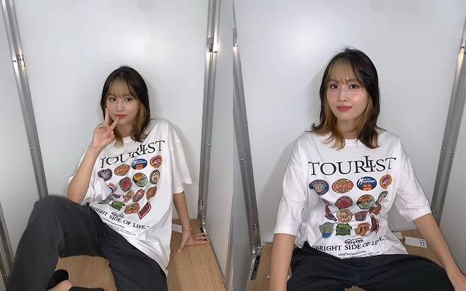 사진 속 모모는 힙한 분위기로 팬심을 흔들었다. 앞머리까지 포인트를 준 투톤 헤어로 극강의 스타일리함을 선보인 그는 'TOURIST'가 크게 적혀있는 티셔츠를 입고 자유롭게 포즈를 취했다.