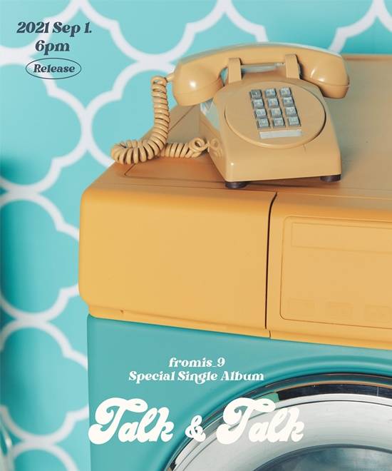 공개된 티저 이미지는 산뜻한 색감으로 채워진 가운데 전화기 한 대가 놓여있어 새 앨범에 대한 궁금증을 증폭시켰다. 또 싱글명 ‘톡앤톡’과 발매일 문구가 더해져 프로미스나인의 컴백을 기다린 전 세계 팬들에게 설렘을 안겼다.