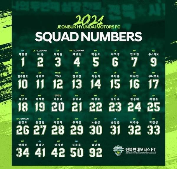 전북은 4일 구단 공식 소셜미디어(SNS)를 통해 2021시즌 후반기 번호를 알렸다.