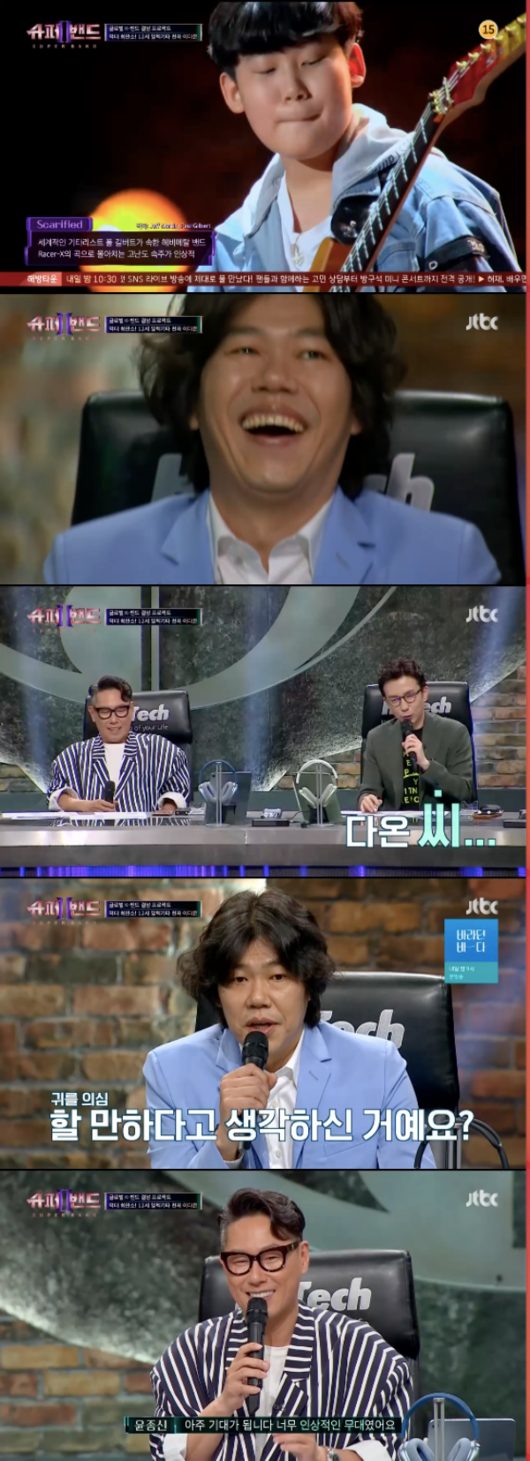 5일 오후 방송된 JTBC '슈퍼밴드2'에서는 드러머 유빈과 12살 기타리스트, 작곡가 다비 등 다양한 실력자들이 출연해 기량을 뽐냈다.