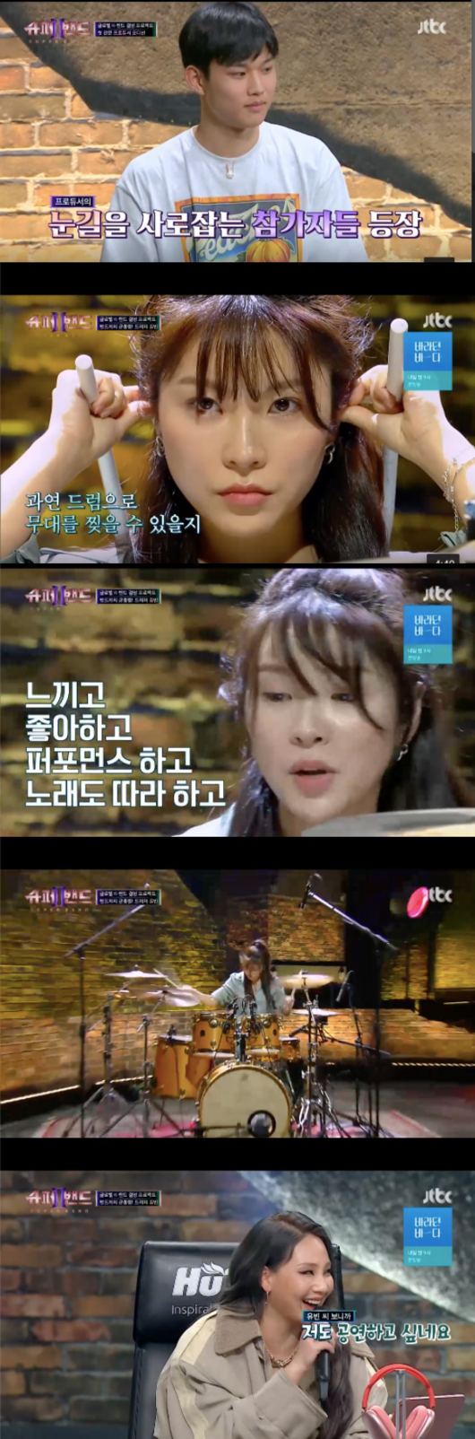 5일 오후 방송된 JTBC ‘슈퍼밴드2’에서는 드러머 유빈과 12살 기타리스트, 작곡가 다비 등 다양한 실력자들이 출연해 기량을 뽐냈다.
