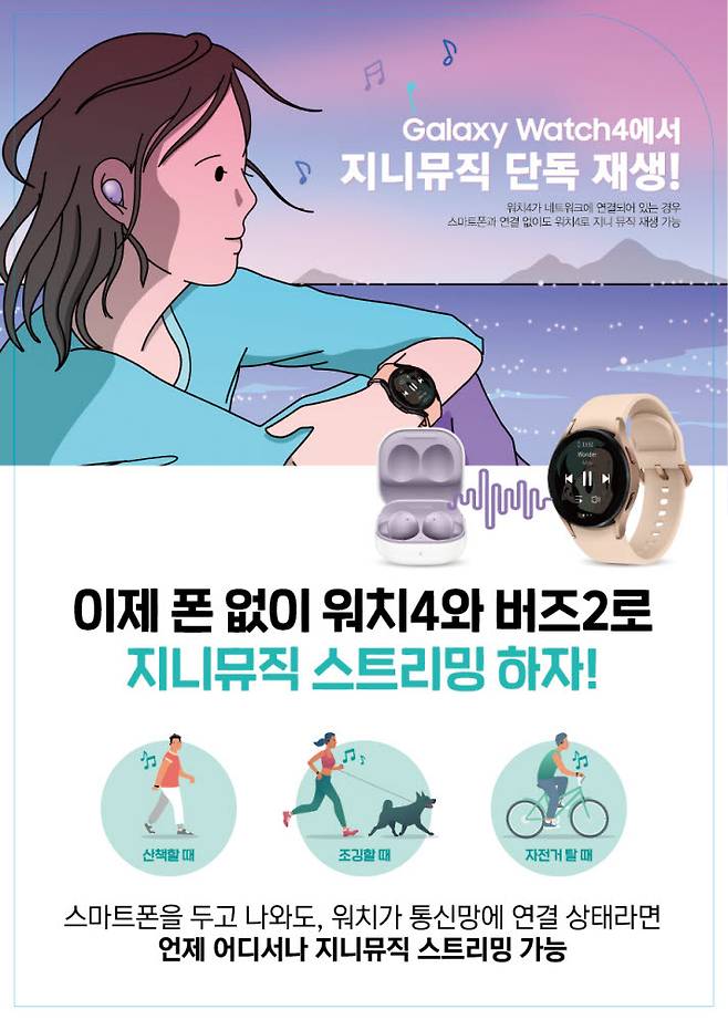 KT, 갤럭시워치4에 지니뮤직 '단독재생' 지원.. 폰없이 음악 감상