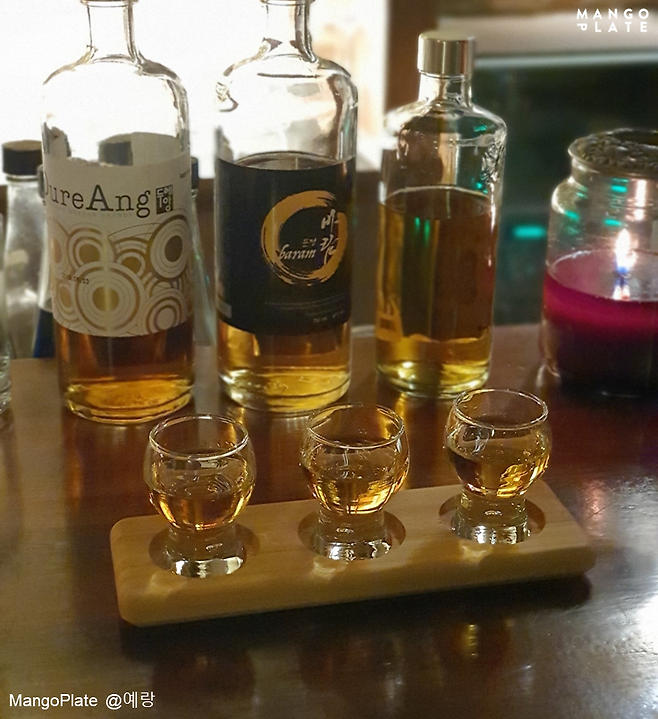 우리나라에서 생산되는 증류주를 중심으로 우리술만을 전문적으로 취급하는 국내 최초 우리술 Bar '작'입니다. 위스키, 와인, 사케 전문점들이 성행하는 시장에 우리의 술을 편히 접하고 즐길 수 있도록 하기 위한 만든 공간이라고 해요.