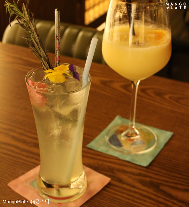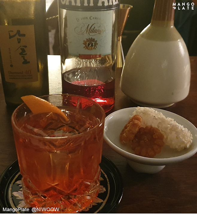 메뉴판에는 다양한 술이 일러스트와 함께 글로 자세하게 설명되어 있어 전통주를 처음 접하는 분들에게 아주 친절한 곳이에요. 원하는 취향에 맞추어 칵테일을 추천해주시기도 하니 메뉴를 봐도 고르기 힘들다면 바텐더님 찬스를 써보세요. 계피향을 좋아하는 분들에게는 모주 칵테일, 청량하고 깔끔한 맛을 좋아한다면 담솔&토닉을 추천해요!