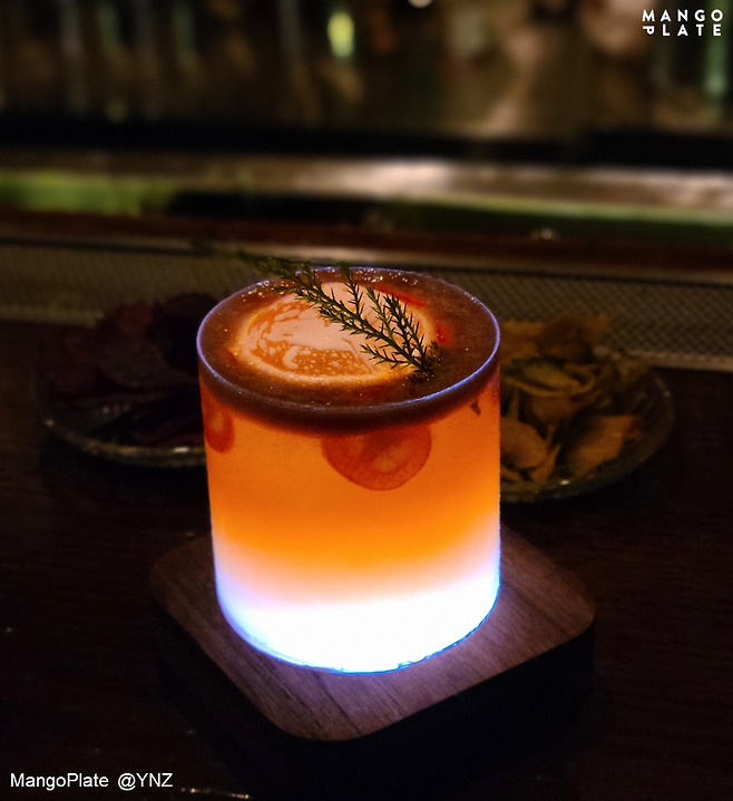 냉면 칵테일, 삼계탕 칵테일, 떡볶이 칵테일...! 영동시장 내 상인과의 협업으로 만들어지는 신박한 칵테일이 많답니다. 삼계탕 칵테일은 영동시장 내에서 사온 닭으로 삼계토닉을 만들고 위스키를 더해 만들었고, 냉면 칵테일은 한산소곡주 천상문이라는 전통주 베이스로 만든 메뉴예요. 실제 물냉면 육수를 먹는 듯한 재치있는 칵테일이에요.
