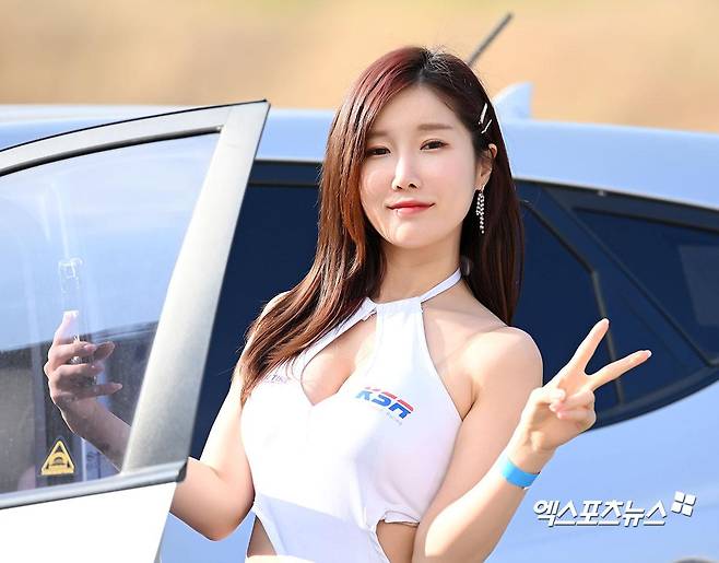 (엑스포츠뉴스 태백, 김한준 기자) 14일 오후 강원도 태백스피드레이싱에서 열린 ‘넥센스피드레이싱’ 7라운드 경기, 레이싱모델 윤지가 포즈를 취하고 있다.