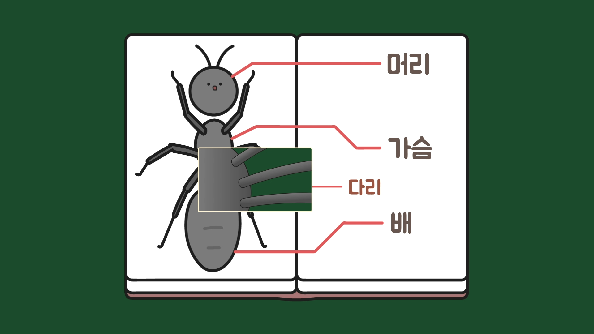 의문을 해결하기 위해 벌레의 몸 구조부터 알아보면 크게 머리·가슴·배로 나뉘고, 가슴 부위에 다리가 달려있습니다. 이 다리는 몸통과 비교했을 때 상당히 가늘며 속이 비어 있습니다.