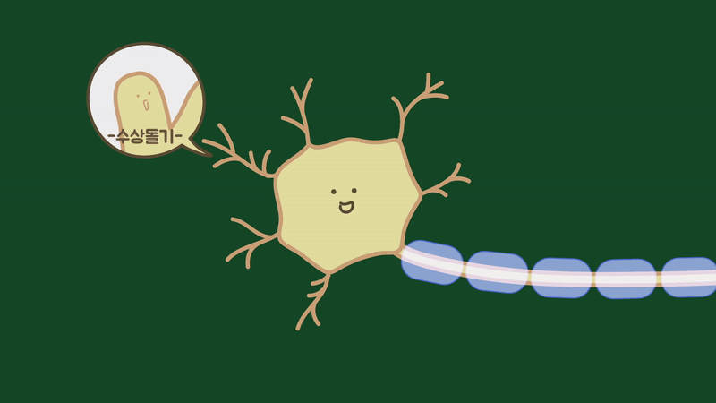 신경세포는 크게 수상돌기와 축삭돌기 등으로 나누어집니다. 수상돌기가 다른 신경세포에서 보내는 전기화학 신호를 신경 세포체로 전달하면 세포체에서는 전달된 전기화학적 신호의 세기에 따라 활동전위를 생성하고, 축삭돌기를 통해 다른 신경세포로 전기화학 신호를 전달합니다.