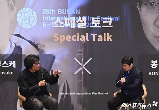 봉준호 감독 이야기를 전하면서는 더욱 뿌듯한 마음을 드러냈다. 하마구치 류스케 감독은 "봉준호 감독님과의 대담 때 느꼈던 것은, 올해 제가 했던 어떤 경험들보다도 가장 흥미로웠고 행복했던 시간들이었다는 것이다"라고 말을 꺼냈다.