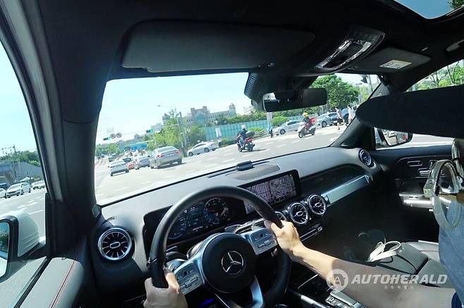 주행모드는 슬리퍼리, 컴포트, 스포츠, 스포츠 플러스, 인디비주얼 등 5가지로 구성된다. 각각의 모드에 따라 완전히 다른 차를 운전하는 듯한 느낌을 전달하는 부분이 이색적이다. 스포츠 플러스 모드에선 강력한 엔진과 배기 사운드로 일반 GLB에서 절대 만날 수 없는 고성능의 맛도 느껴진다.