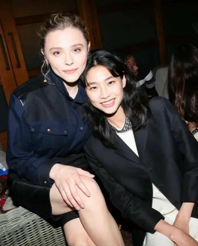 이어 정호연은 영화 <500일의 썸머>, <킥애스>로 잘 알려진 할리우드 배우 클로이 모레츠와 함께 찍은 사진을 공개하기도 했는데요. 사진 속 정호연은 흰색 원피스에 검정 재킷을 걸쳐 우아한 매력을 뽐내며 클로이 모레츠와의 친분을 과시했습니다.