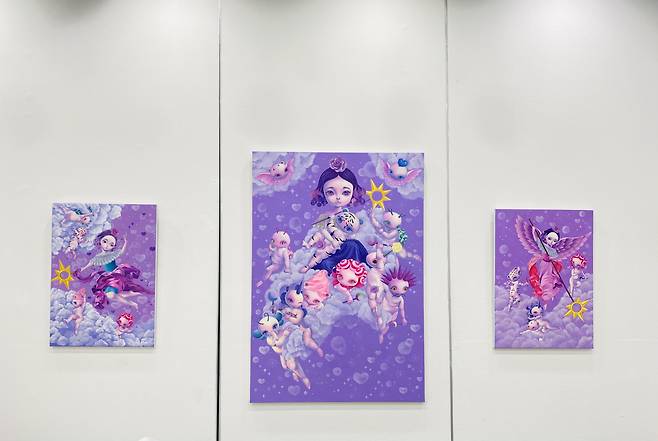 어린 소녀와 돌연변이들은 신화와 성경의 이야기 속에서 레퍼런스를 찾았다. 작업 중 성모와 이브를 믹스한 캐릭터가 있는데 이것은 긍정과 부정의 여성성의 대표 이미지들을 섞어 놓음으로써 우리가 알고 있는 이미 규정된 캐릭터에서 새로운 캐릭터가 탄생된다. 이것은 학습되어지고 당연하게 여기던 것들을 한 미술작가의 작은 힘으로 섞어버리고 표현함으로써 일종의 통쾌함과 표현의 자유를 누리는 것이다.