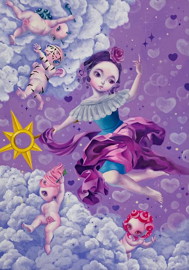 우리가 알고 있는 영웅이 매번 이기는 것은 진부하다. 나는 약자가 영웅이 되는 세상을 구현해 내고 싶었다. 어린 여자는 사회적 약자일 경우가 많고 돌연변이 또한 종에서 생존이 어려운 약자에 포함될 때가 많다. 이 약함 이라는 것을 공통점으로 가지고 있는 이들을 내가 만든 가상세계 속에 캐스팅 했고 이들은 내가 만들어 내는 상상력으로 이미지화 되어 캔버스에 그려지기도 하고 디지털화면 속에 그려지기도 한다.
