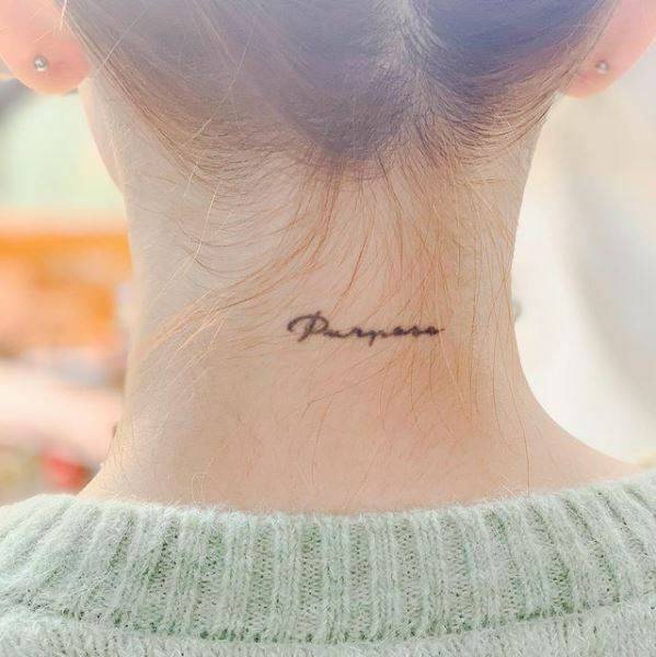 목뒤의'Purpose'타투는