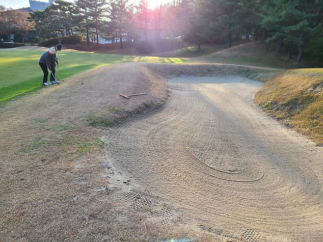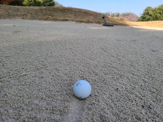 벙커에 들어가지 않았기에 특별히 어렵다고 할 수 없을듯합니다. 사진처럼 벙커 턱 높이도 낮으며, 개수도 많다고 느껴지지 않았습니다.