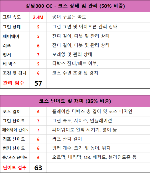 · 골프장: 강남300 CC - 아웃/인 코스