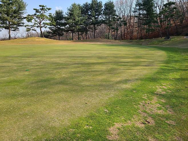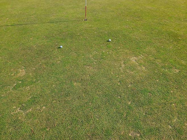 그린 속도는 평균 2.4미터로 느린 편에 속합니다. 그린 관리 상태도 표준 이하여서 더 느리게 구른듯하며, 피치 마크 수리를 제대로 못한 흔적이 많습니다.