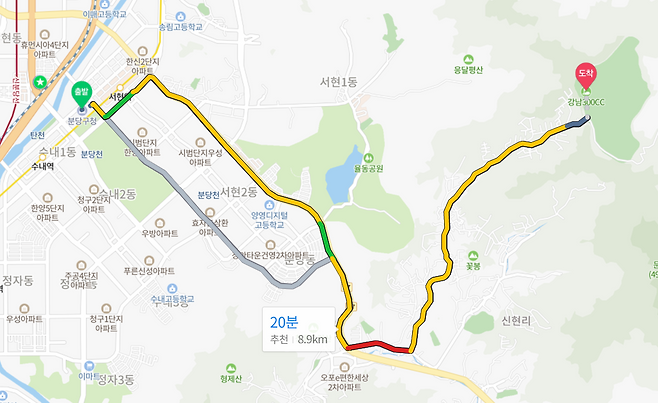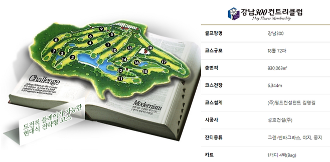 분당에서 가장 가까운 골프장이라고 소개되는 강남300 CC는 정말 분당구청에서 20분 거리에 위치합니다. 홈페이지에는 "생각하는 GOLF를 추구하는 전략적 골프 코스"라고 소개되지만, 실제로는 매우 짧고 변별력이 적은 평범한 골프장으로 느껴졌습니다. 가장 큰 이점은 강남과 분당에서 근접하다는 것이지만, 가성비가 매우 적은 점이 단점이라고 생각됩니다.