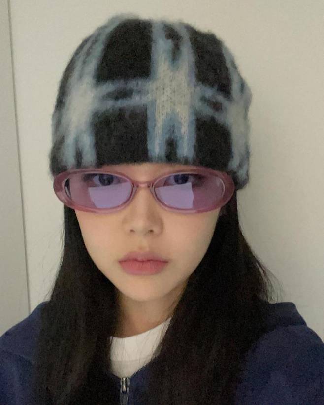 사이버틱한 패턴의 니트 비니와 타원형 모양의 테의 선글라스 조합이라니! 마치 y2k 시절로 돌아간 듯한 감성을 보여주는 미노이의 스타일링을 한 번 배워보는 건 어떨까. 니트 비니는 CPK 제품.
