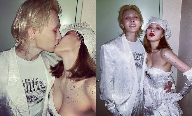 두 사람은 과감한 포즈는 물론 현아가 혀를 내밀며 장난을 치는 귀여운 사진도 올렸다. 특히 키스 사진을 올리며 공개 커플다운 과감함을 선보였다. 현아와 던은 지난 2018년부터 공개 연애를 이어오고 있는 중이다.