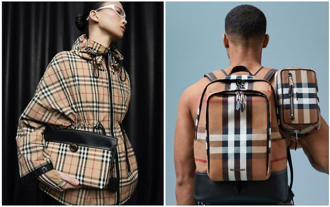 체크가 빠진 모던한 스타일의 버버리 가방들을