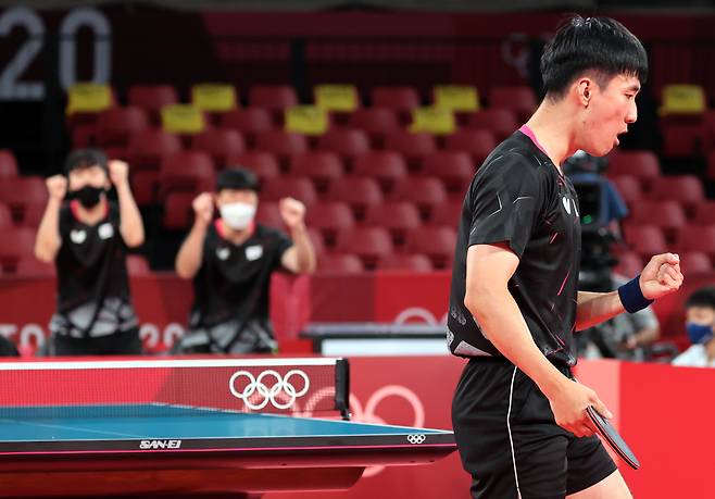 ![4일 일본 도쿄체육관에서 열린 도쿄올림픽 남자 탁구 단체전 한국-중국 준결승에서 마룽과의 단식에 나선 이상수가 득점하자 선수들이 박수치고 있다. [화면출처 : 연합뉴스]](https://img1.daumcdn.net/thumb/R658x0.q70/?fname=https://t1.daumcdn.net/news/202108/05/kbs/20210805191243988zlli.jpg)