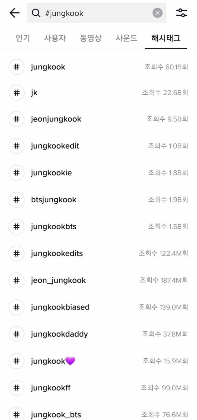 글로벌 쇼트폼 비디오 플랫폼 틱톡에서 지난 21일 정국은 자신의 고유 명사 개인 해시 태그 '#jungkook'으로 600억뷰를 넘어섰다.