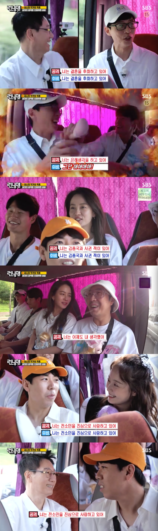 그는 "넌 김종국과 사귄 적이 있어"라고 공격했고 송지효가 이를 인정하자 유재석은 "예상하고 있었어"라고 부추겼다.