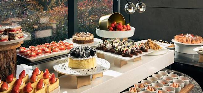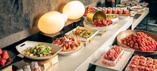 클래식한 분위기에서 제대로 디저트를 즐기고 싶다면 롯데호텔 서울 페닌슐라의 딸기 뷔페를 주목할 것. 귀여운 웰컴 디저트로 맞이하는 롯데호텔 라운지 페닌슐라에서는 딸기와 잘 어울리는 로네펠트 티 하우스의 차와 커피 중 음료를 선택할 수 있다. 포르투갈 잼 브랜드 ‘메이아 두지아’의 물감 모양의 잼으로 디저트를 담은 접시를 꾸밀 수 있도록 함께 제공된다고. 칠리새우, 불고기, 파스타, 떡볶이 등 딸기의 맛을 한층 업시켜줄 메뉴들도 총 무장되어있으니 참고할 것.주말에는 총 3부로 나뉘어 운영된다.