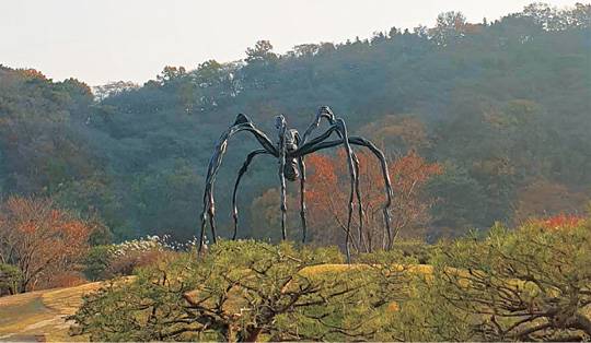 경기 용인 호암미술관 수변공간에 자리한 작품 ‘마망(Maman·사진)’에 대한 관람객들의 반응이다. 마망은 현대미술의 대모로 일컬어지는 프랑스계 미국 조각가 루이즈 부르주아(1911~ 2010)의 대표작이다. 지난 9월부터 호암미술관에 설치했는데, 점점 소문이 나면서 관람객들의 발길이 늘어나고 있다는 게 미술관 측 전언이다. 지난 3일 수변공간 현장을 찾아보니 실제로 마망을 바라보며 대화를 나누거나 사진을 찍는 이가 많았다.