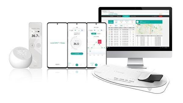 연속 체온 모니터링 솔루션은 몸에 부착하는 웨어러블 체온 패치, 사용자 모바일 앱, 다중 이용자 체온 관제 소프트웨어로 구성돼 있다. 기존 피부 부착형 체온계들과는 달리, 이 체온 패치는 4개의 적외선 센서를 배열해 외부 온도간섭을 대한 보정능력을 높여 정확한 체온을 측정할 수 있다. 설정에 따라 7일 이상 장시간 체온 모니터링이 가능하다.