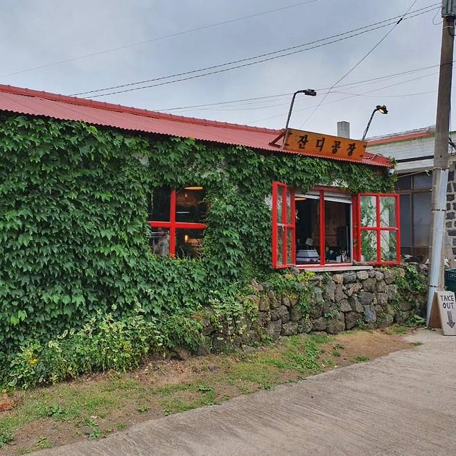 제주도의 독특한 카페를 잇님들에게 많이 소개 해드렸는데 이번에 마음을 사로잡을 잔디공장 카페입니다. 잔디공장이라는 이름처럼 건물 외벽부터가 담쟁이 덩쿨로 감싸고 있는 외관이에요. 여름이 다가오니 초록 초록한 외관을 보는 것만으로 시원해지는것 같아요.