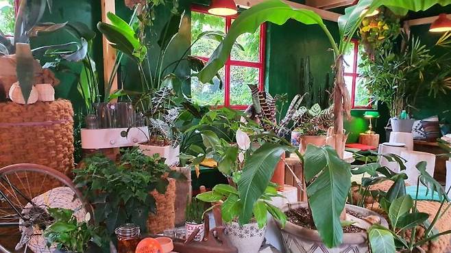 실내가 푸르니 마음도 편한 느낌이었습니다. 이 많은 화분들을 관리하는게 정말 대단한것 같아요. 전 몇개 있지도 않은 화분들 키우기가 너무 힘든데 말이에요.