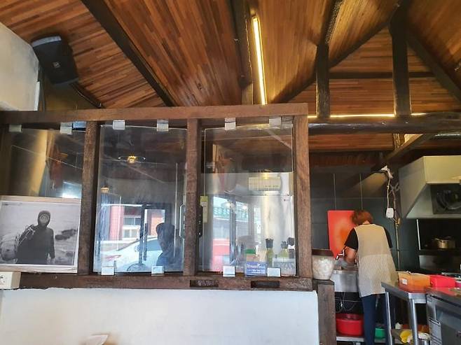 제주 김만복의 실내 모습입니다. 입구 바로 왼쪽으로 주방과 카운터가 위치해 있구요. 이곳에서 주문 합니다.