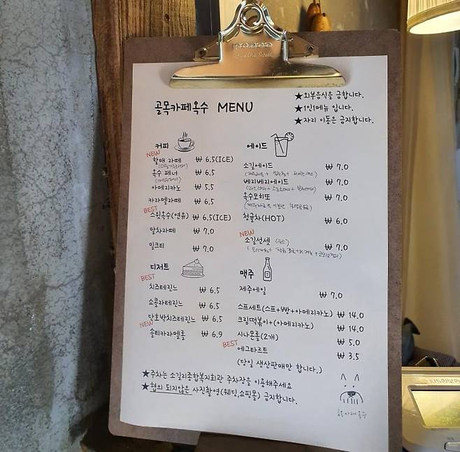 간단한 골목카페 옥수의 사용설명서가 있어요.