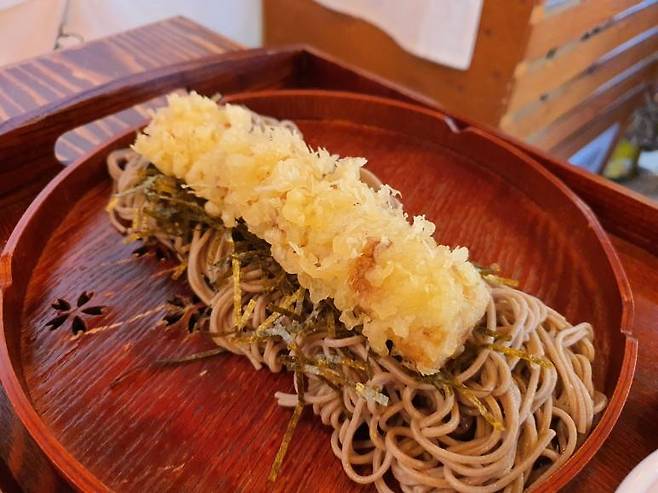 김만복의 메인 메뉴인 전복김밥입니다. 특별한건 없네요. 전복내장으로 비빈 밥을 계란과 함께 말았습니다. 전복내장에 비빈 맛이라 어느정도는 예상이 가는 맛이기는 합니다. 다만 가운데 들어간 계란이 탱글 탱글하고 달달한 맛이 전복 내장과 잘 어울리네요. 처음 먹어본 김만복은 기대보다는 맛있습니다.