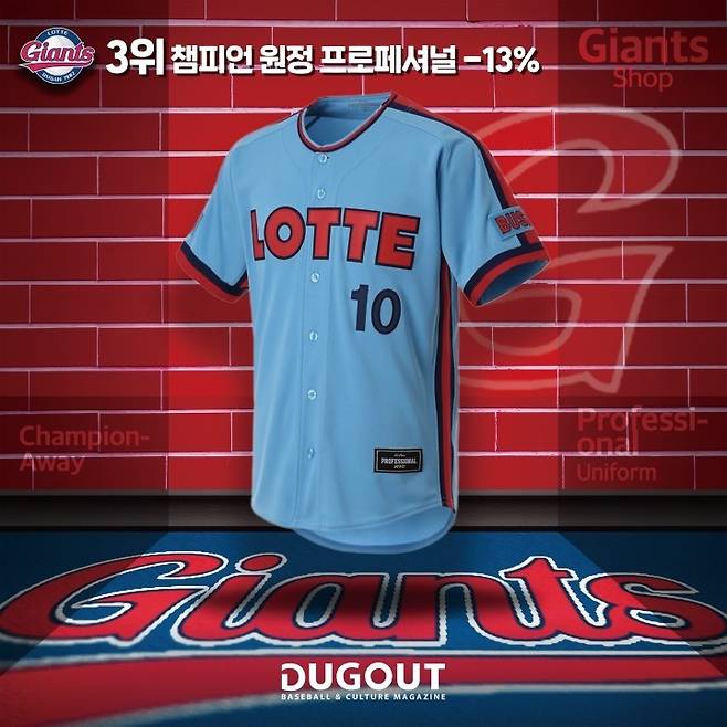 역시 추억을 이기는 것은 없다. 패션계를 뒤엎은 레트로 열풍이 KBO리그에도 영향을 끼치며 클래식한 매력의 챔피언 홈 프로페셔널이 치열한 경쟁 끝에 2위에 안착했다. 유니폼 정면에 적힌 ‘LOTTE’는 특유의 두껍고 각진 폰트가 사용됐지만, 시간이 흐른 지금에서야 봐도 전혀 촌스럽지 않다. 오히려 그 시절 감성이 돋보인다는 평이다. 꾸준한 판매율을 자랑하며 효자 상품 노릇을 톡톡히 하는 올드 유니폼, 팬들은 이 유니폼을 입은 예전의 롯데처럼 성적도 그때와 같아지길 염원하고 있다.