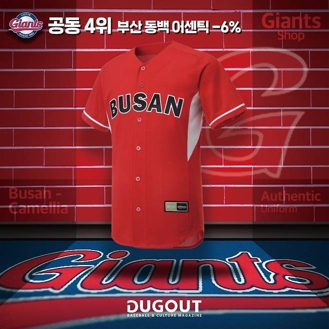 무려 네 개의 유니폼이 동일한 표수를 거두며 공동 4위에 올랐다. 그만큼 쟁쟁했다는 뜻이다. 먼저, 봄을 알리는 꽃이자 부산광역시의 시화(市花)인 동백꽃을 모티브로 삼은 부산 동백 어센틱 유니폼은 동백꽃의 진한 붉은색을 그대로 사용한 것이 특징이다. 유니폼 정면에 부산의 영문철자 ‘BUSAN’이 새겨져 있고 오른팔에는 동백꽃 패치를 붙여 상징성을 극대화했다.