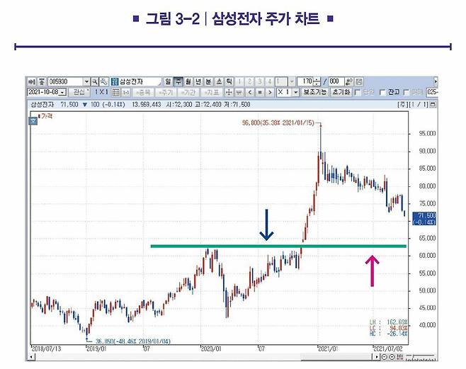 삼성전자 차트를 보면서 지지선과 저항선 개념을 자세히 이해해봅시다.