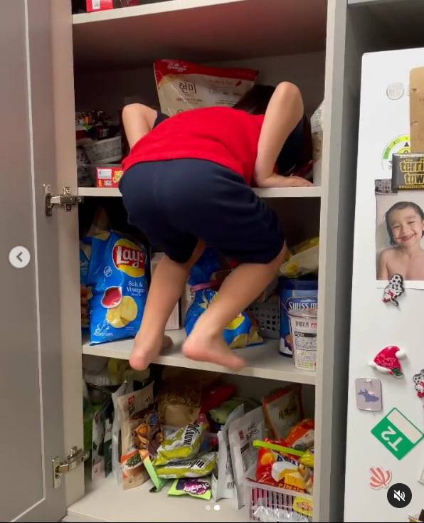 공개된 사진과 영상 속에는 집의 선반을 기어 오르는 윌리엄의 모습이 담겼다.