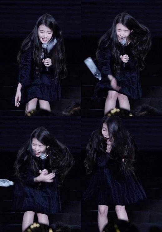 당시 아이유는 공연 중 "목이 마르다 물 좀 달라"라는 말을 했고, 이에 객석에서 누군가가 아이유를 향해 물병을 던졌다. 그런데 이 물병이 아이유의 뺨에 정통으로 맞아 아이유를 놀라게 만든 것. 실제로 아이유는 뺨에 손을 갖다 대고, 고통스러운 표정을 지었다. 그러나 이내 웃으면서, "괜찮아요. 저 진짜 괜찮아요. 이건 그냥 웃긴 상황일 뿐이에요. 물 마실게요"라며 관객들을 안심시켰다. 대인배다운 대처와 인성에 팬들은 큰 감동을 받았다.