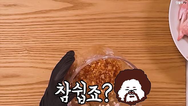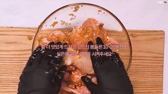 3. 닭고기와 양념을 잘 버무려요. 실온에 10분 숙성시키면 더 맛있습니다.