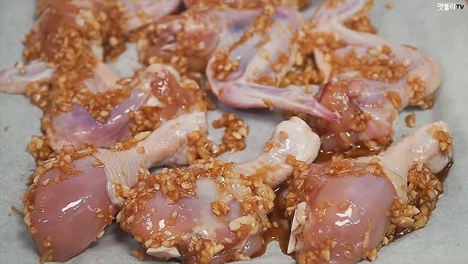 간장갈릭 양념이 짭잘한 맛을 더하는
