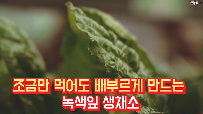 가만히 있어도 살이 빠지게 만드는 일등공신은 바로 녹색 잎 생채소! 식이섬유와 포만감을 동시에 선사하기 때문이죠. 당질 흡수도 어느 정도 억제하고 혈당 상승도 더디기 때문에, 살도 빠지고 식욕도 통제할 수 있게 도와줍니다.