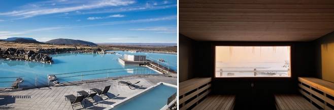 2004년 오픈한 미바튼 네이처 바스는 미바튼 자연 보호 구역에 속한다. 북극권 기준 남쪽으로 불과 65마일(약 104㎞) 떨어져 있어 아이슬란드 북부 날것의 풍경과 오로라를 동시에 감상할 수 있다. 미바튼 호수 지열 지역 최대 2500m 아래에서 끌어올리는 물을 끌어 올려 노천탕을 채운다. 물 온도는 36~40도. 유황 성분이 들어 있어 천식과 기타 호흡기 질환에 도움을 줄 수 있다고 설명한다.