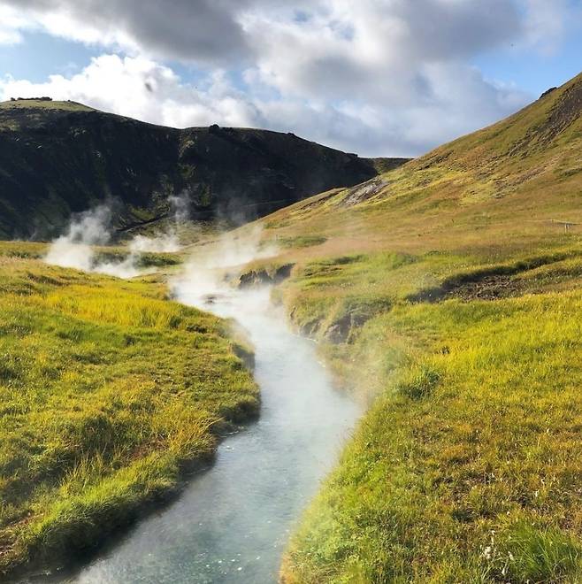 레이캬비크에서 30마일(48) 떨어져 당일치기 여행이 가능하다. 레이캬달루르는 아이슬란드말로 증기 계곡을 의미한다. 계곡이 있는 헨길Hengill 산은 2000년 전에 마지막으로 분화한 활동 화산이다. 레이캬달루르 협곡에는 온천과 진흙 웅덩이로 가득하고 연중 온도 40도가 유지되는 강도 흐른다. 따로 조성된 온천 시설은 없고 이 뜨끈한 강물에 몸을 담그는 거다. 주차장에 차를 대놓고 온천이 흐르는 강까지는 2마일을 걸어 들어가야 한다.