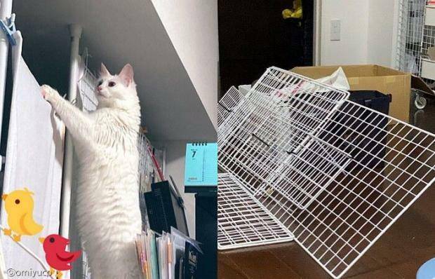 2시간 동안 공들여 만든 방묘문이 2분 만에 돌파당하는 모습을 보며 허탈한 마음이 든 집사는 이 상황을 자신의 SNS에 올렸다.