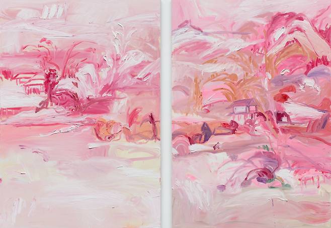 나의 회화에서 드러나는 다양한 양태의 산수화적 방법론은 요가수행의 발화한 것이며, 그 때의 호흡은 들고 남, 멈춤에 따라 붉은색과 흰색으로 드러나는데, 이것이 분홍의 모습으로 어우러져 살과 골격, 호흡과 명상의 세계를 이루어 낸다.