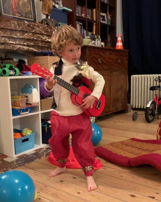 사진 속 우리스는 한복을 입고 앙증맞은 기타를 들고 포즈를 취하고 있다.